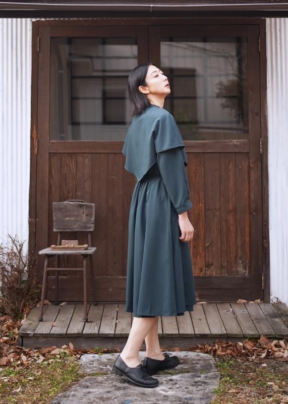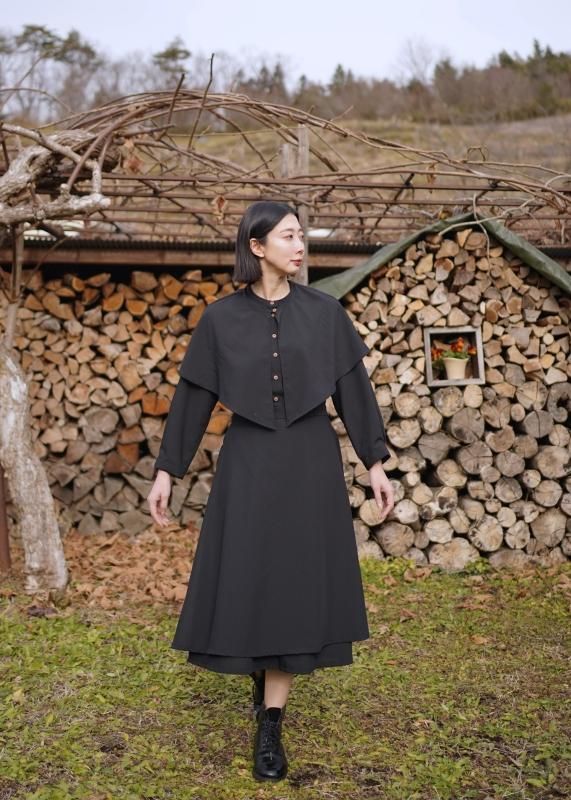 エプロンとケープを外すとややドレスダウンしたカジュアルな印象に。パーカーやセーターを羽織るなど日常着としての着回しもできそうです。