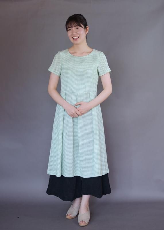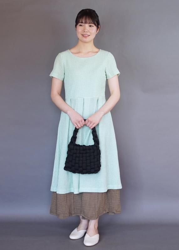 ・清涼感のあるシャリっとした薄手の夏向き素材です。シャーリングという生地をくしゅっとさせる技術で適度に身体にフィットしたシルエットがかわいいポイントです。