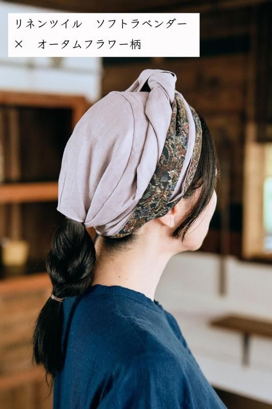 顔周りを織り込んで柄を見せたり、自分好みの巻き方を見出してください。