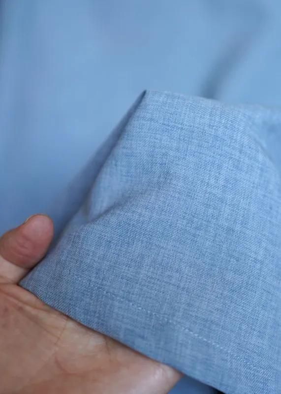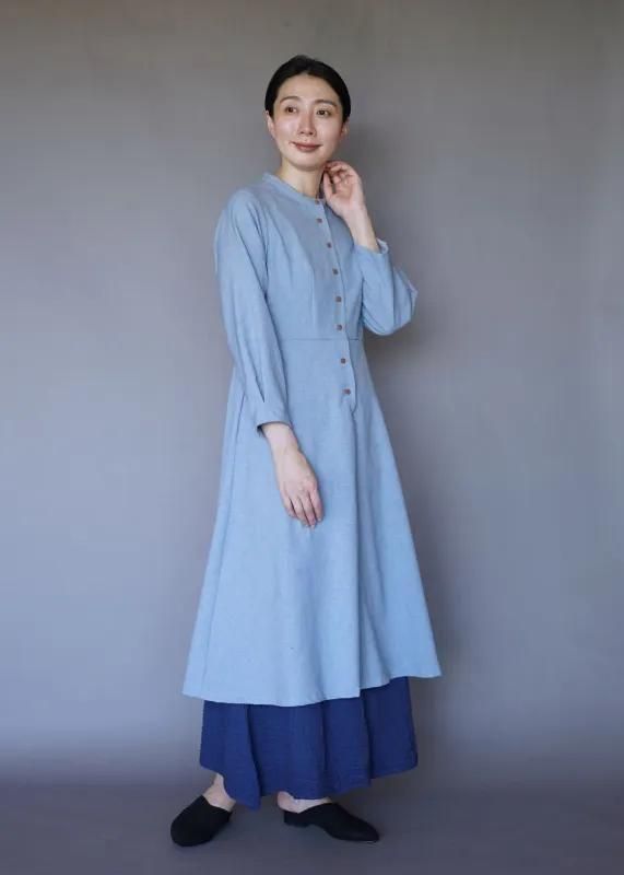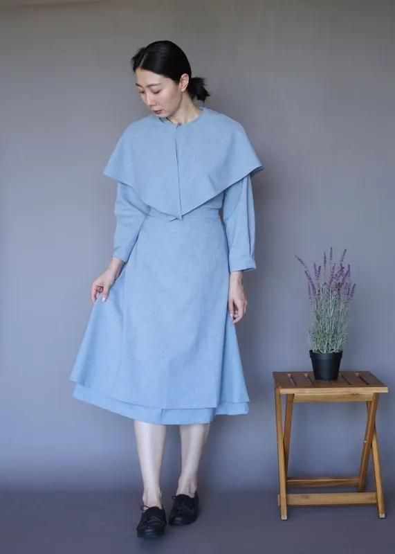 ・適度なハリがあり体型のラインを拾いません。目が詰まっているので保温性もあり。夏以外の長いシーズン活躍する生地です。ポリエステル100%で形状記憶の機能が付いています。嬉しいことに、洗濯してもまったくシワになりません。デニムっぽい風合いのライトブルーは、日常使いしやすいちょうど良いカラーです。