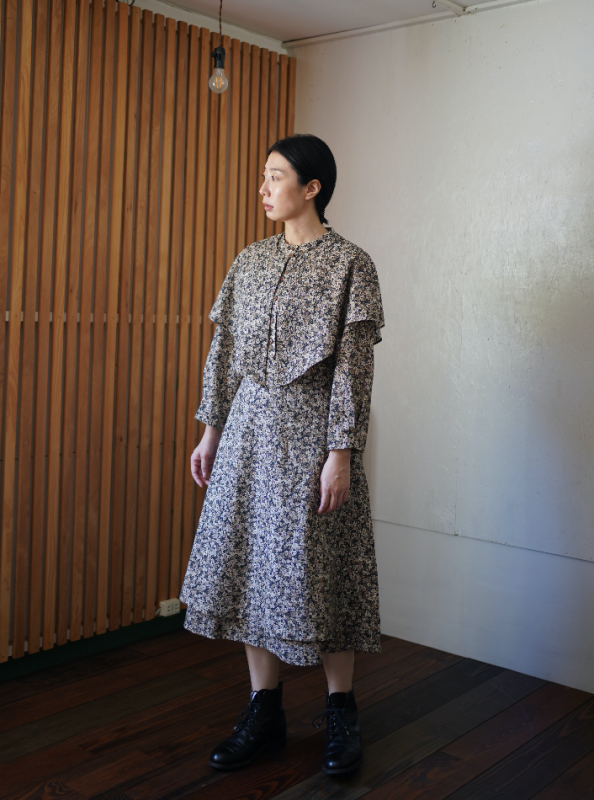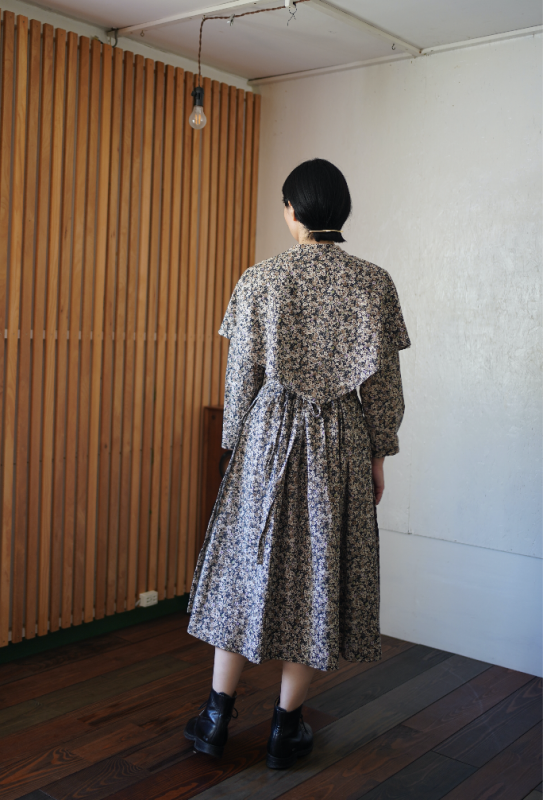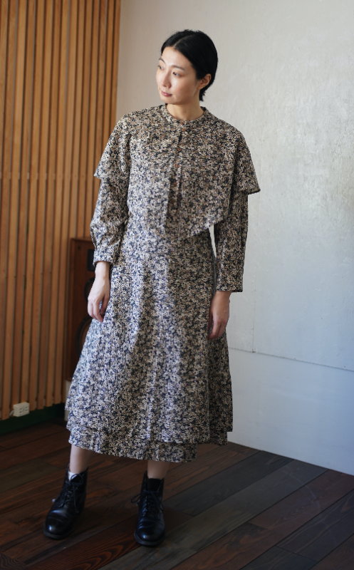 落ち着いた、くすんだ色味。「大草原の小さな家」や「若草物語」など、古き良き時代の物語の登場人物が着ているような、そんなレトロな雰囲気たっぷりの花柄です。