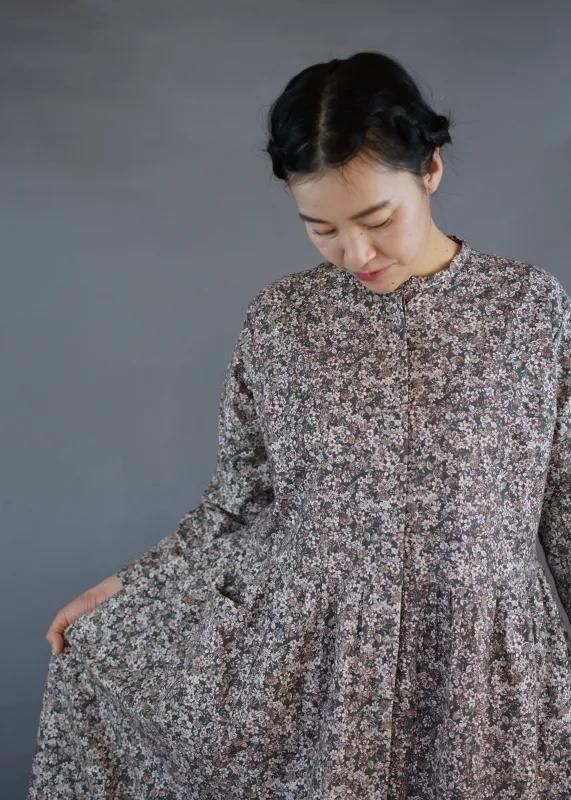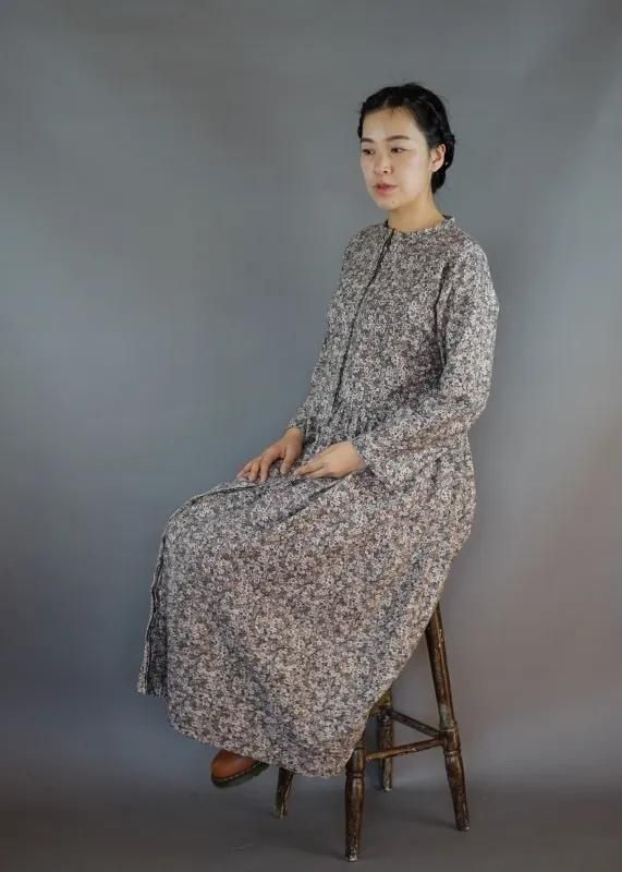 落ち着いた、くすんだ色味。「大草原の小さな家」や「若草物語」など、古き良き時代の物語の登場人物が着ているような、そんなレトロな雰囲気たっぷりの花柄です。