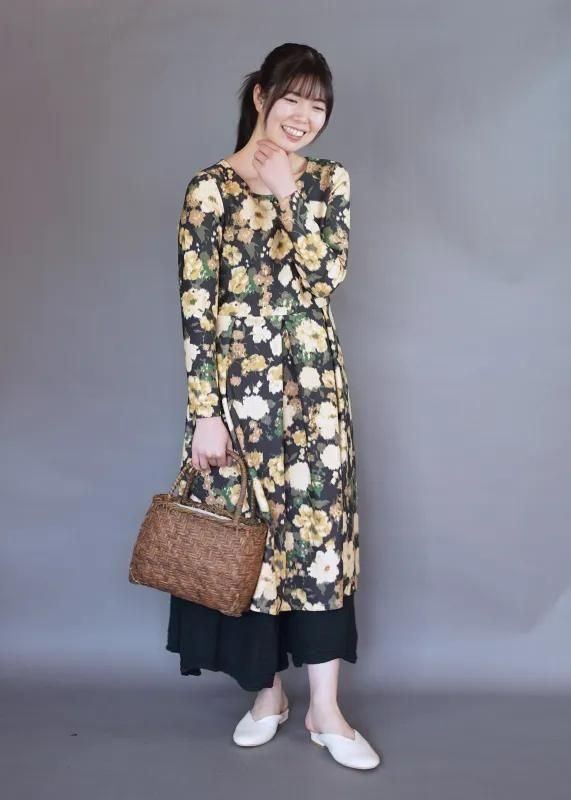 \人気の厚手ストレッチ生地シリーズに新作の仲間入り。甘くなりすぎない色合いの花柄です/