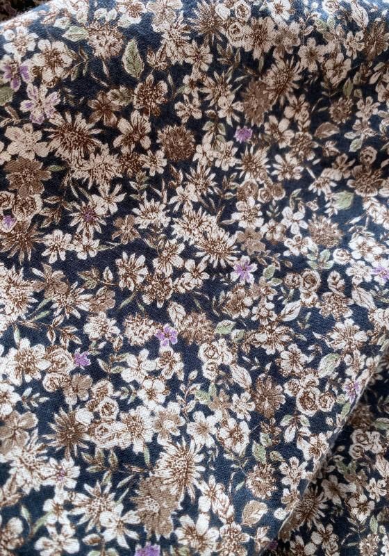 落ち着いた、くすんだ色味。「大草原の小さな家」や「若草物語」など、古き良き時代の物語の登場人物が着ているような、そんなレトロな雰囲気たっぷりの花柄です。