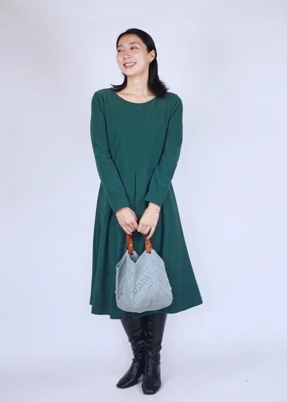 ・暖かく、伸びも良く着心地が良い。シワにならず、絶妙なな発色。秋冬におすすめの厚手コーデュロイ生地です。ダークグリーンの他、ローズピンク、スモークブルー、スモークグレーも展開中。